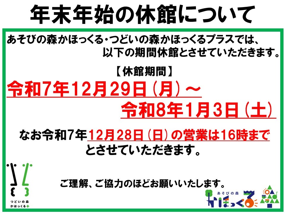 本年もあそびの森かほっくるをご利用いただきありがとうございます🎵